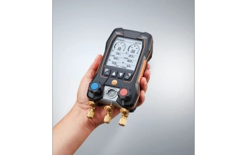 The electronic manifold testo 550s Smart Kit is an indispensable tool for technicians working with refrigeration, air conditioning systems, and heat pumps. Its compact and durable design, equipped with a 2-way valve block, ensures convenient and precise measurements. The large graphic display provides excellent readability of results, while the built-in Bluetooth module enables wireless operation and measurement analysis via the testo Smart App. This allows for quick documentation and the ability to send reports directly from the job site.