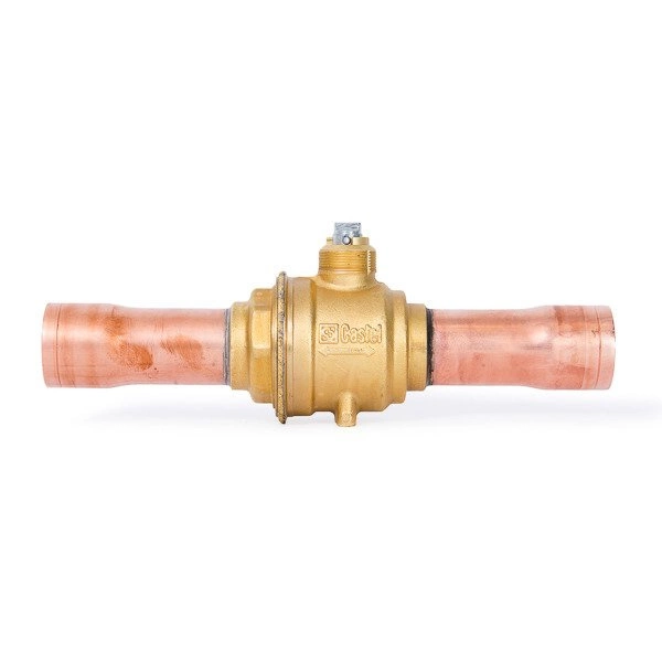 Les vannes d'arrêt à boule Castel 7/8"/22mm (6570/7) avec écrou sont utilisées lorsque l'utilisateur ne doit pas avoir un accès direct à l'unité de réfrigération. Ces vannes se caractérisent par le fait qu'elles ont deux positions déterminées sans ambiguïté "ouverte" (dans le sens du flux) et "fermée" (en travers du sens du flux), ce qui rend impossible la rotation et l'endommagement du siège de la vanne.