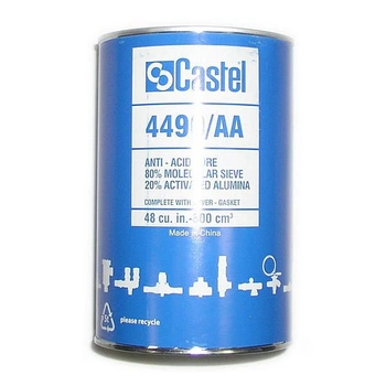 Cartouche de déshydratation à base d'agent désacidifiant pour les filtres démontables Castel de la série 4411/A-/B-/AF, 4412/A-/B-/AF, 44113/A-/B-/AF,4414 /A-/B-/AF . Grâce à ses paramètres unifiés (dimensions et propriétés), la cartouche Castel H-48 peut également être utilisée pour les filtres démontables d'autres marques telles que ALCO, DANFOSS, SPORLAN ...