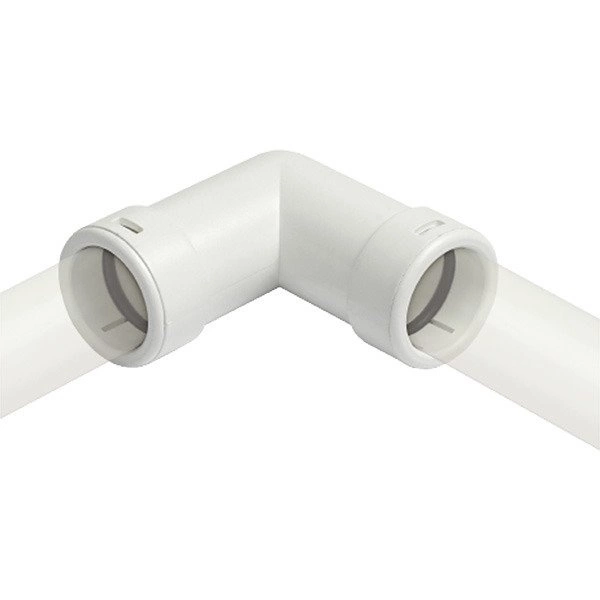 Coude à 90° pour le raccordement de tuyaux en PVC (dans un système de joints) destinés à l'évacuation gravitaire des condensats. Aucune colle n'est nécessaire pour l'assemblage.