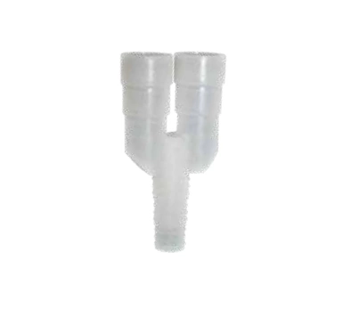Pièce en T en PVC flexible, destinée à raccorder deux évacuations de condensats (constituées de tuyaux ondulés d'un diamètre de 18 mm ou 16 mm) à un collecteur d'évacuation collective.