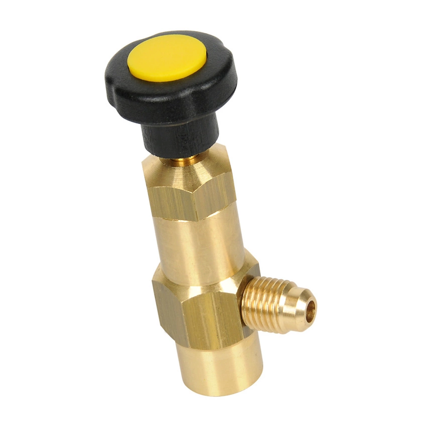 Vanne avec filetage mâle 1/4" SAE pour bouteilles de réfrigérant à usage unique R600a (isobutane), R290 et R134a .
