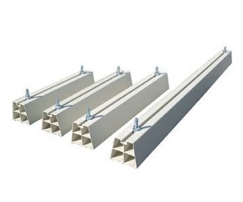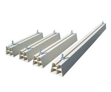 Un support de sol en PVC dur pour une unité extérieure de climatisation permettant de monter l'unité sur une surface plane lorsqu'il n'est pas possible ou nécessaire d'installer l'unité extérieure de climatisation sur un mur du bâtiment (par exemple, au sol, sur un toit plat, sur un balcon, sur une terrasse). L'ensemble comprend deux poutres.