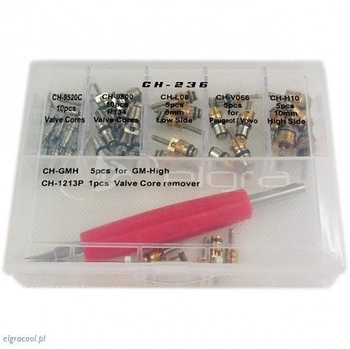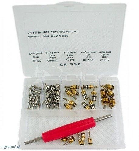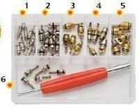 Jeu de six types de valves de climatisation automobile + clé à valve
