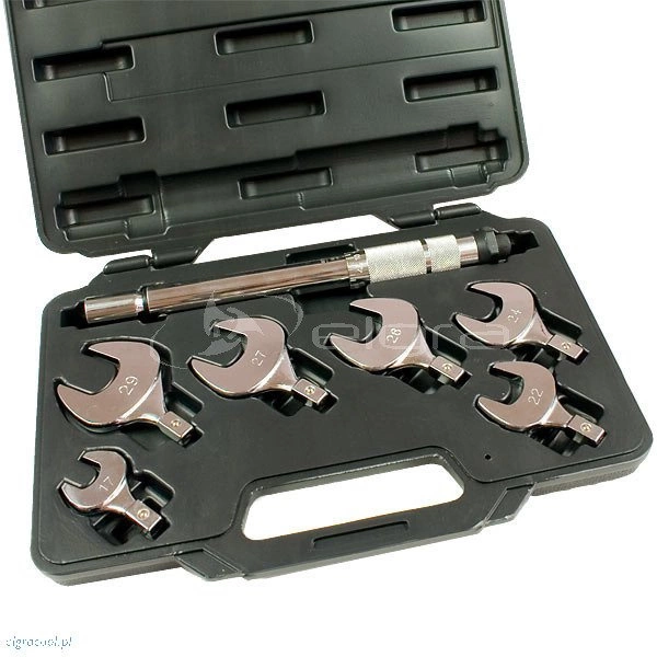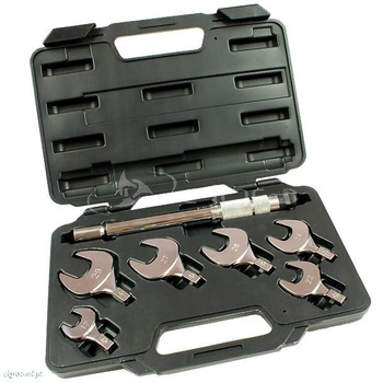 Jeu de clés dynamométriques pour les systèmes de climatisation et de réfrigération avec un jeu d'embouts interchangeables .Le tout dans un étui en PVC rigide. Afin d'obtenir un raccord fileté sûr et étanche dans l'installation de fréon, il est nécessaire de s'assurer que les écrous et les boulons sont correctement serrés (conformément aux recommandations du fabricant de l'équipement et aux bonnes pratiques) . Elle est utilisée pour clé dynamométrique avec couple réglable.