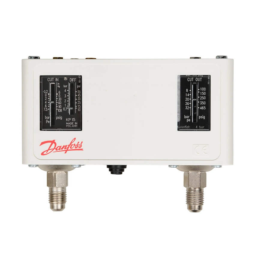 Le double pressostat Danfoss KP15 060-124166 est un dispositif de contrôle de la pression pour les systèmes de réfrigération et de conditionnement d'air. Son but est de surveiller la pression du système et de protéger le système contre des valeurs de pression indésirables, protégeant ainsi le compresseur et d'autres composants du système contre les dommages.